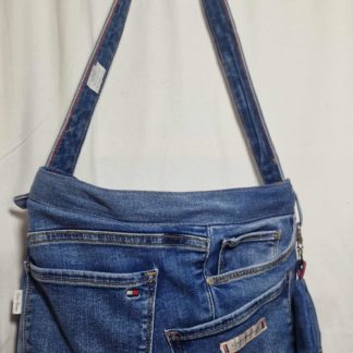 Nerka/ saszetka jenasowa mała z paskiem i klamrą w czerwonym kolorze. Nerka posiada kieszeń na przodzie zapinaną na zamek, kieszonkę ozdobną a w środku podszewkę z przegrodą. Jeans pochodzi z recyklingu, przed szyciem jest prany i prasowany, pozostałe elementy są nowe. Pasek jest długi i regulowany, wzmocniony nitami. Wymiary; długość nerki 35 cm, wysokość 16,5 cm, głębokość mierzona wg klapki 10 cm, długość całkowita nerki z paskiem 146 cm. Niepowtarzalność gwarantowana.